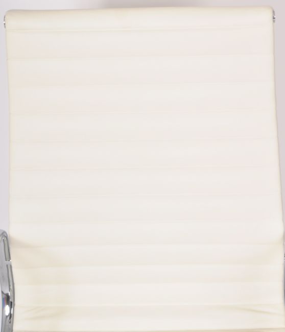 After Charles And Ray Eames - EA117 - Aluminium Group - A contemporary high back swivel office desk chair / armchair having a chromed steel finished frame with white aniline leather ribbed seat and backrest. All raised upon a four point swivel star base and castors. Measures approx; 113cm x 58cm x 60cm.