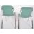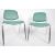 A matching pair of contemporary chrome and vinyl waiting / side chairs having turquoise upholstered padded seat and backrest raised on chrome A-frame supports. Each measures approx; 88cm x 60cm x 61cm.