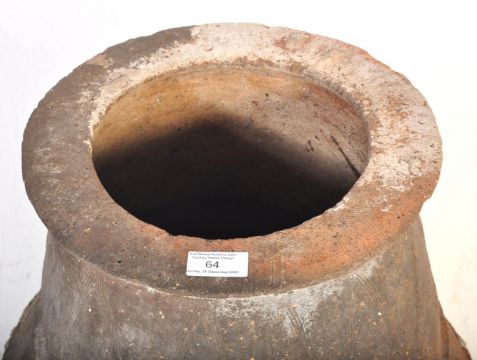 Julfar Ware (U.A.E., Ras Al-Khaimah) - A large 17th Century traditional style amphora pottery vase of large floor standing tapering ribbed form. Measures approx; 74cm x 44cm diameter.