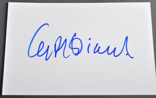 Star Wars - Ian McDiarmid (Darth Sidious / Emperor Palpatine) - autographed 6x4" white card. Signed in blue ink. Supplied with a certificate of authenticity from an AFTAL member, and an 8x10" colour photograph of The Emperor.