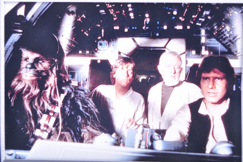 Star Wars (1977) ( A New Hope ) - a reputedly production used cockpit fitment from the Millennium Falcon. The small resin fitment being a casting from a vintage Hella light (similar to a cockpit light from an aircraft), painted silver and on a resin base. Painted to appear as metal. Some paint loss from production use, and a small area scratching to the front. Mounted in a custom acrylic display case, with battery operated lights fitted. With a certificate of authenticity from Neil Harrison at Elstree Studios. A unique piece of Star Wars history. Total display size; 33cm x 33cm x 13cm.