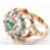 A vintage hallmarked 9ct gold cluster ring. The ring having prong set clustered white & green stones in a cathedral set head. Central stone measures approx 5 x 5 2.7mm. Hallmarked for Birmingham 1973. Weighs approx 4.2g. Size M.