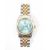 A Rolex oyster perpetual datejust superlative chronometer officially certified wrist watch. The watch having a round face with a cyan blue dial, diamonds set to the hour markers and date aperture to three within a two tone stainless steel case. Case marked 16233, 978736. Case measures 36mm. Ticking at time of cataloguing, date and hands wind and set. No box or paperwork present.