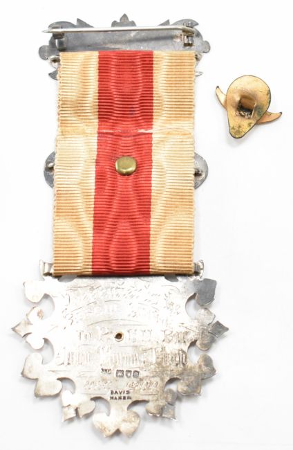 An early 20th Century silver hallmarked Masonic silver medal. The medal having a red and yellow ribbon with a round medal to the base with moulded phoenix to the front. Hallmarked London 1900. Measures 11.5cm. Weight 27.5g.