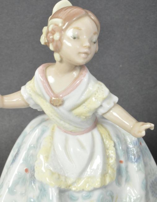 Lladro - Two vintage 20th century Spanish porcelain Lladro figurines to include Carmencita 5375 and Teresita 5375. Measures 13cm tall. Overall good condition. Yellow rose appears to be glued.