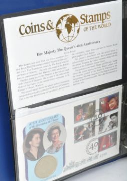 A collection of Royal Mail coin FDC / First Day Covers to include The Golden Jubilee 2002, Gold Proof Sovereign coin cover, Isle of Man 100 days to go coin cover, Gibraltar Golden Jubilee, 22 carat gold foil coin, Farewell to the Florin FDC,, Wildlife in Winter, 350th Anniversary Civil War and more.