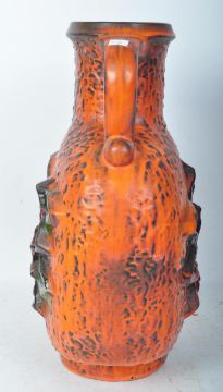 A large retro vintage mid 20th century West German jug having a central rose floral motif with a textured exterior. Makers mark to the underside. Stamped number 7765 - 45. Measures 46cm high.