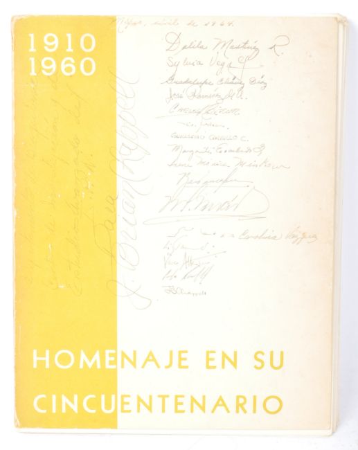 Posada - La revolucion Mexicana - Homenaje en su cicuentenario 1910 - 1960. A vintage 20th Century Mexican day of the dead sketch book. The book having a cover sleeve with sketches inside depicting scene of skeletons, war, trains, church, women, and more. Measures 33cm tall. Condition; the sleeve is worn with creases and dog earing, the book cover is also worn but sketches and font undamaged.