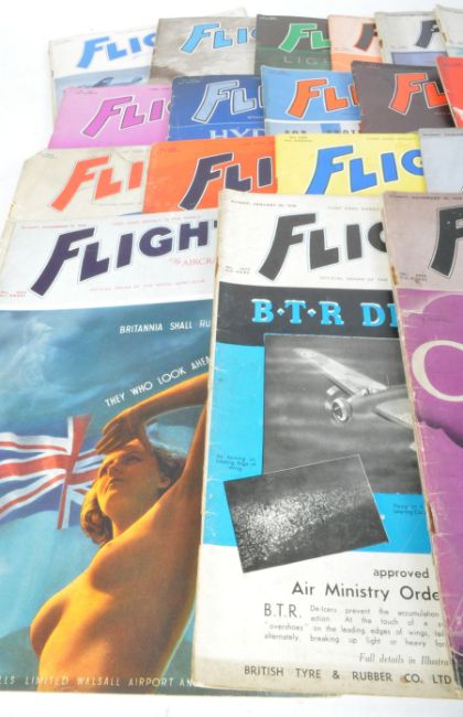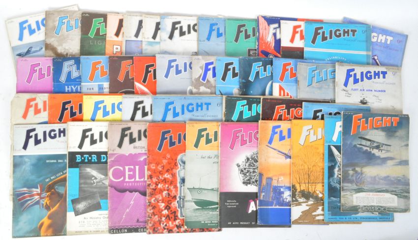 Of Aeronautic & Aviation Interest - Flight and the Aircraft Engineer - The First Aero Weekly in the World - A large collection of mid 20th century WWII World War II era circa. 1940's magazine journals. Each edition featuring news and information on aviation.