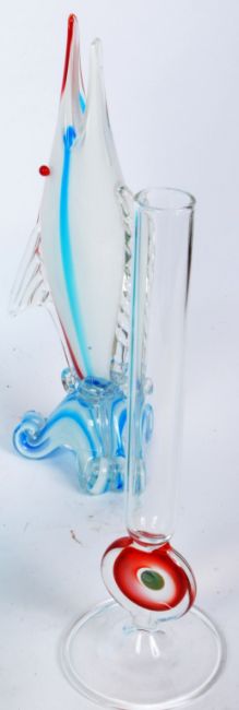 A collection of retro vintage mid 20th Century studio art glass, comprising of jars, jugs, stem vases, candle holder and bottle. All in a variety of vivid colours, with twisted patterns. Tallest measures approx. 21cm