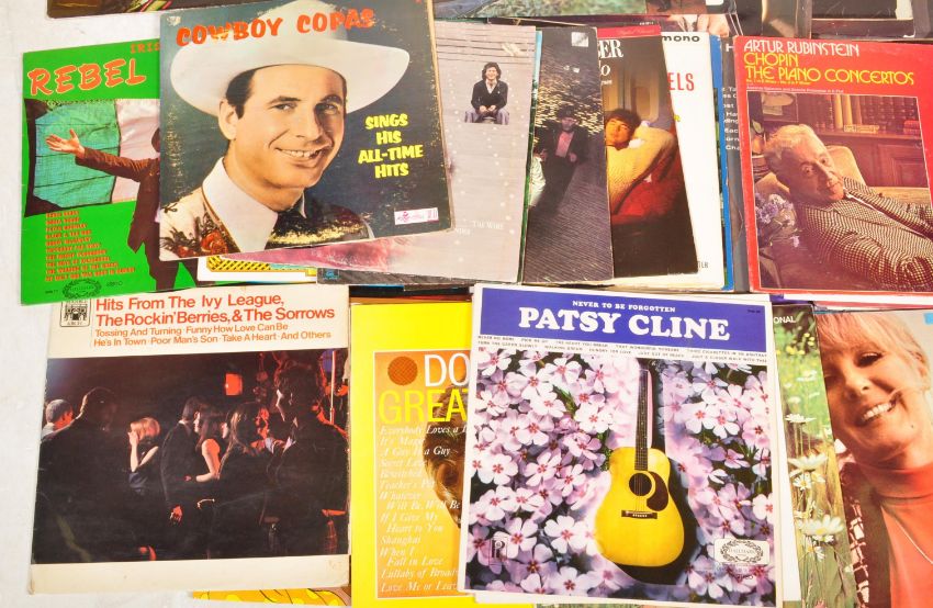 A large collection of vintage 20th century  LP / long play vinyl record albums, approx. 110, comprising a wide selection of genres and styles. Artists include Chet Atkins, Barbara Streisand, Kiki Dee, Classic Rock London Symphony, Fools Gold, Earthquake 8.5 (rare import), Shirley Bassey, Petula Clark, Andrea Lloyd Webber, Now that's what I call music Music XIII, Cat Stevens, and more. Decades included are the 1960s, 1970s, 1980s & 1990s.