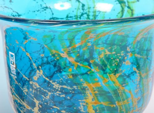 Mdina - After Michael Harris - A pair of vintage retro 20th century Mdina Maltese art glass footed vases with strapped glass stem. Both acid marked to base with Mdina retail sticker.