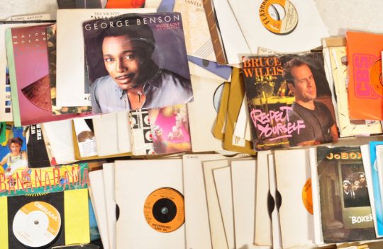 A collection of vintage 20th century vinyl 45" single records to include The Righteous Brothers, The Jacksons, The Piranhas, Sultanesque, Narada Micheal Walden, Gilbert O'Sullivan, Andy Gibb, Rak,c JoBoxers, Always There, Stevie Wonder, Bananarma, Enya, The Moody Blues, Avalon, Sinead O'Connor, The Dakotas, Godley & Creme, Squeeze, Paul Young, Stevie Wonder, Joan Armatrading, Eye to Eye, Diana Ross, Bruce Willis, Boy George, Kim Wilde, T.Rex, Nina Simone and more.