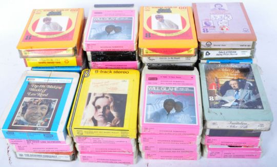 A collection of vintage 20th century 8 track cassettes comprising of Les Humphries Singers, Richard Digance, Terry Jacks, The World of the Bachelors, Will Glahe, Full House Dixie, Twiggy and more. Contains various styles of music from the 1970s.