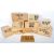 A collection of nine vintage original Nikon camera boxes. To include boxes for Nikon FM3a, Nikkor FADFE, Nikon FM2, Nikon SB - 20 and more. Varies in sizes, in a gold colourway with black font. Largest measures approx. 11cm x 19cm x 14cm *BOXES ONLY