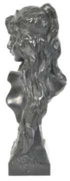 A vintage 20th century resin bust statuette sculpture in the form of a Pre-Raphaelite maiden raised on plinth base. Measures 23cm tall.
