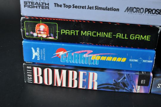 Retro Gaming - a collection of boxed big box Sinclair Spectrum computer video games to comprise of; Fighter Bomber, Carrier Command, F-16 Combat Pilot, Enigma Force Beyond, Night Raider (missing a cassette), No Limits, Arcadia, We Are The Champions (missing a cassette), Robocop (missing a cassette), Project Stealth Fighter, Desert Rats, Ancient Battles, Star Glider (missing a cassette), Elite, Gunship and F-15 Strike Eagle.