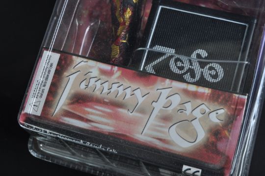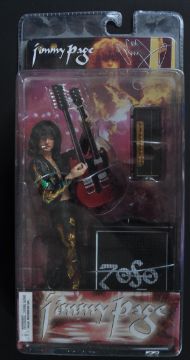 An original Neca made Led Zeppellin action figure Jimmy Page. The figure dressed in his dragon suit complete with double necked guitar, speaker cabinet, and amp. Appears mint and unused.