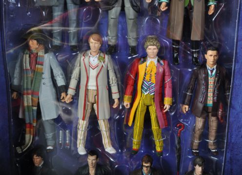 Doctor Who - Character Options - an 'Eleven Doctors Figure Set' boxed action figure set featuring all eleven Doctors. Highly detailed. TARDIS shaped display box. Contents mint and untouched. Box 7/10 - some wear.
