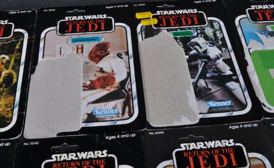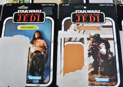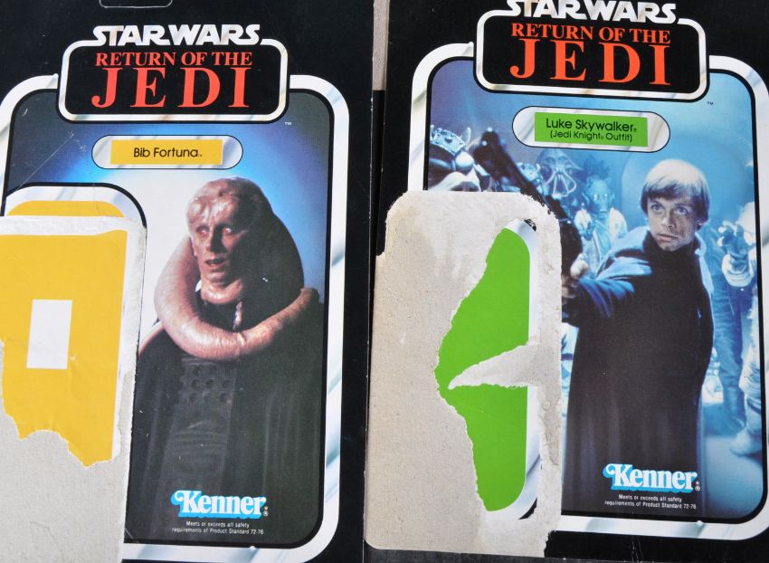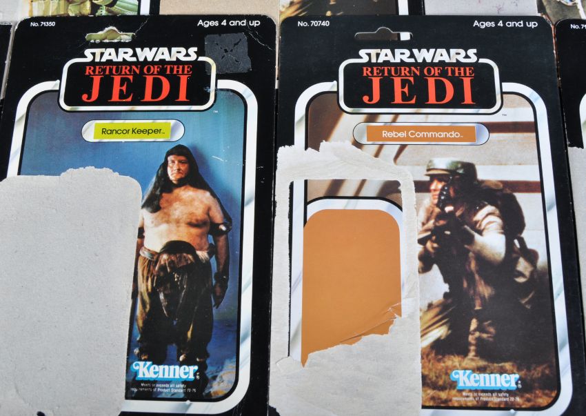 Star Wars - a large collection of x19 original vintage Kenner made action figure card backs. All from the Return Of The Jedi line, and including card backs for; Bib Fortuna, Luke Skywalker Jedi Knight, Cloud Car Pilot, R2D2 With Sensorscope, Chewbacca and others. Various conditions. No action figures present.