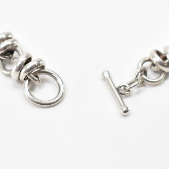 A 925 silver fancy link necklace with toggle clasp. Weighs approx 76g. Measures approx 40cm.