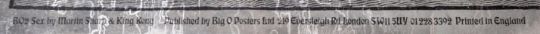 Poster Sex by Martin Sharp and King Kong.  Sex is a psychedelic art piece created by Martin Sharp in 1967. It is screenprint, printed in black, blue and pink ink from three stencils, on silver foil laminated paper, published by Big O Posters.  Approx. 51cm x 74.5cm. Wear consummate with age, water damage, tear to right corner.