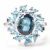 A hallmarked 9ct white gold & blue stone ring. The ring having a central oval cut prong set blue stone surrounded by a halo of navette / marquise cut blue stones on split cathedral shoulders with tapered shank. Hallmarked for Birmingham, 2005. Total weight approx 5.7g. Size T.5.