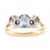 An 18ct gold sapphire and diamond three stone ring. The ring being set with a round cut blue sapphire flanked by two illusion set diamonds. Marked 18ct to band. Sapphire measures 5.1 x 3mm. Diamonds measure 1.7mm diameter. Size H.5.