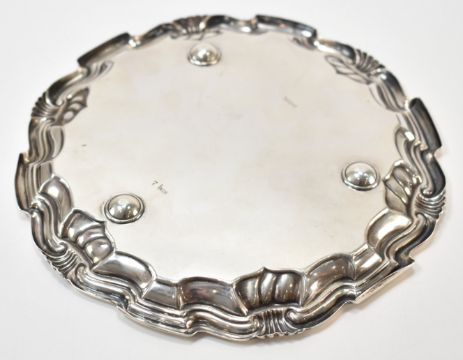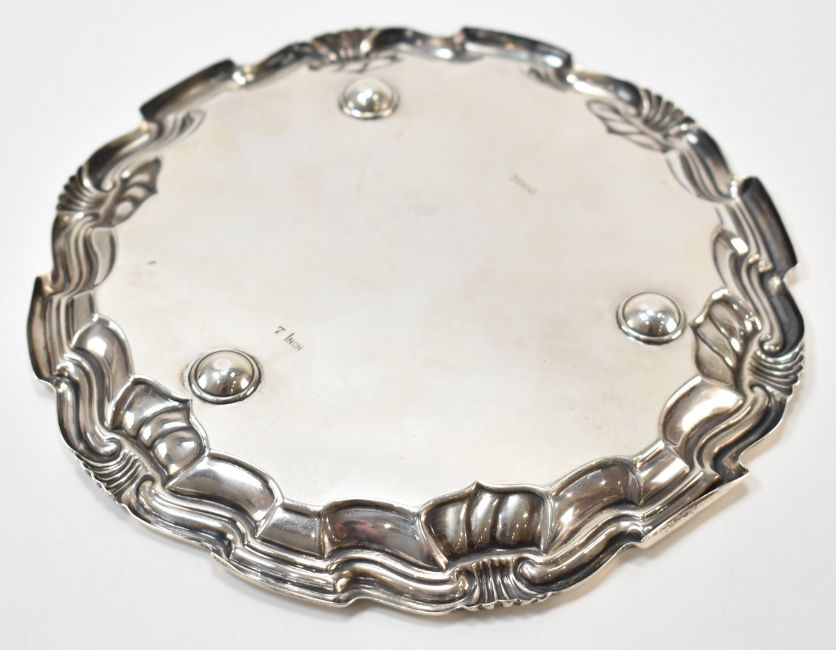 An early 20th Century Edwardian Joseph Rodgers & Sons silver hallmarked tray / plate of round form. The plate having moulded borders with scrolled detailing. Hallmarked Sheffield 1901, sponsors marked Joseph Rodgers & Sons. Measures 18cm wide. Weight 153.3g.