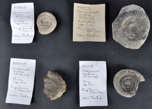 Fossils - a large collection of Ammonite Fossils, to include: Hildoceras, Dactylioceras, Hildoceras Bifrons, Eoderoceras Armatum, Gastrioceras Carbonarium, Graphoceras. Approx: 60 specimens. Together with a box of Coprolites, approx. 5 specimens. From various countries around the world, most with labels and parcelled.