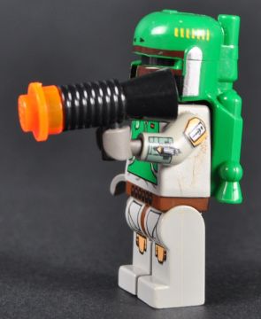 Lego Minifigure - Star Wars - a scarce Lego Star Wars ' Cloud City ' Boba Fett minifigure. The figure with printed-arm variant from the original Cloud City set No. 10123. Appears near mint with blaster weapon.