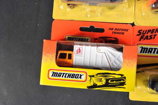 A collection of x10 vintage Matchbox / Matchbox Superfast diecast cars and other vehicles to include; 60 Ford Transit, 58 VW Concept Car, 11 Lamborghini Countach and others. Models mint on card / boxed.