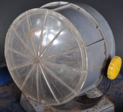 An original 1950's Louis Marx & Co tinplate battery operated searchlight truck toy Powerhouse Motorway Rescue Unit. Blue metal body with plastic revolving searchlight and original black plastic wheels. Measures approx 45cm long.