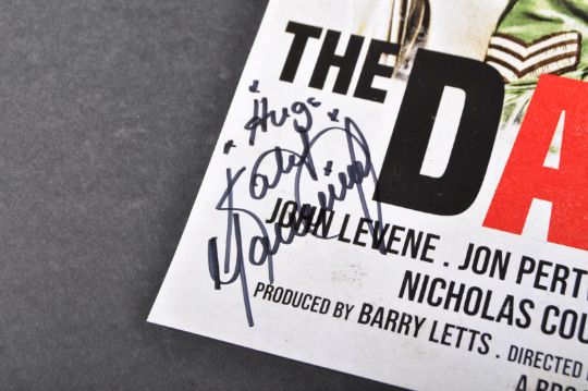 Doctor Who - The Daemons - autographed poster from the classic Dr Who story. Signed to the front by x5 cast members from the story: Katy Manning (Jo Grant), John Levene (Sgt Benton), Richard Franklin (Mike Yates), John Owens (Thorp) and David Simeon (Alastair). All signed in black ink, undedicated. Autographs obtained personally, supplied with certificate. Measures approx; 43x30cm