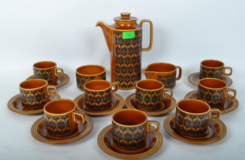 Hornsea - A vintage retro 20th century circa. 1970's Hornsea tea / coffee service in the Heirloom pattern. The service comprising of teacups, saucers, sugar pot, milk jug and coffee pot. Measures 24cm tall.