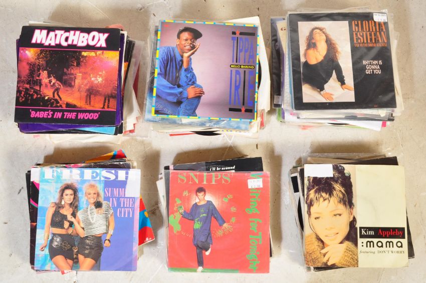 A large collection of vintage vinyl 7" 45s comprising of a wide selection of musical genres to include Stylistics Cat Stevens, Matchbox, The Hot Puppies, Nazareth, Krankies, Joe Loss Big Band, Midge Ure, Matchbox, Communications Breakdown, Criminal Element Orchestra more. Collection is housed in four boxes. Selection includes music from the 1960s to the 2000s.
