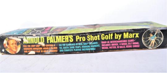 A vintage 20th century boxed Arnold Palmers novelty Pro Shot Golf set by Marx with bunkers and clubs. Box measures 93cm length.