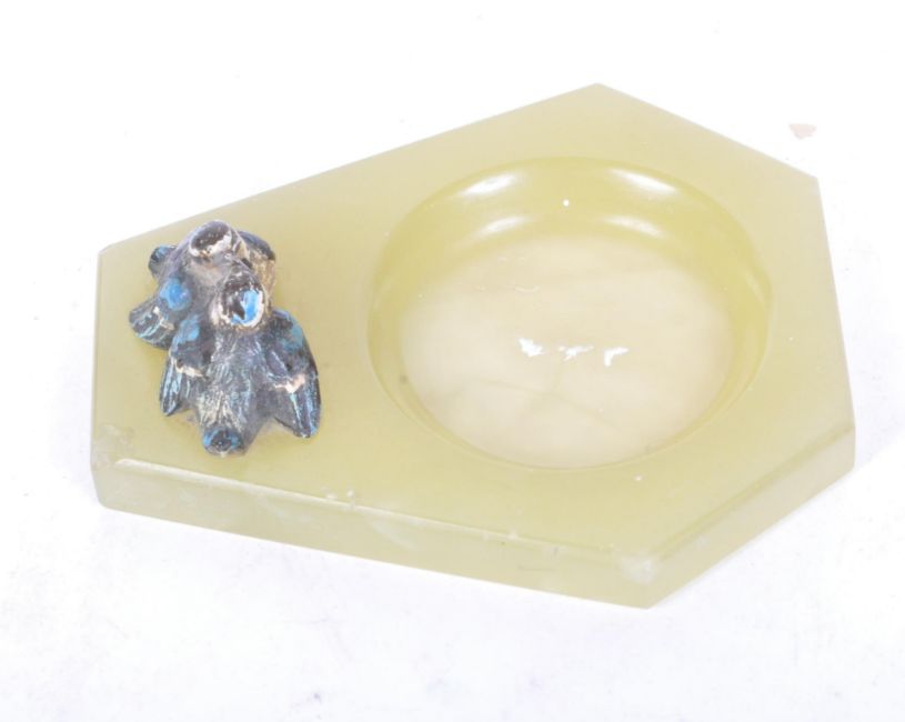 A vintage retro c 1940's cold painted bronze of two birds on a onyx pin dish. Measures approx. 8cm long.