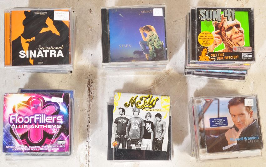 A large collection of over 300+ vintage 20th century and later compact discs CDs comprising of Kaiser Chiefs, R Kelly, Alicia Keys, Lenny Kravitz, Simply Red, Limp Bizkit, Stereophonics, Madonna, Gabrielle, Alien Ant Farm, Bloc Party, Steve Harley and Cockney Rebel, Corrs, Sun 41, Paul Young, Keane and many many more.