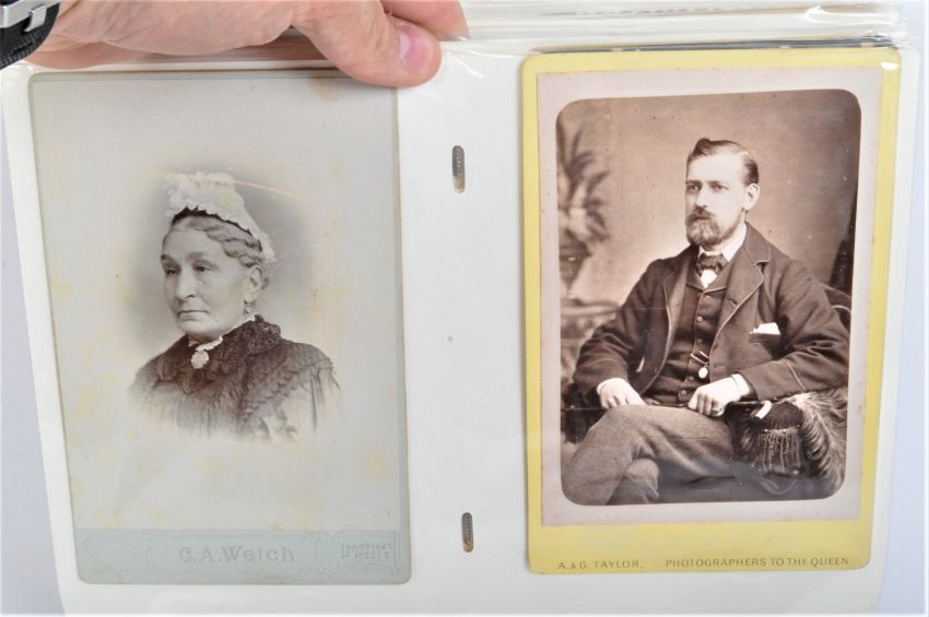 A large album of approximately 200 Victorian 19th century large format carte de visite albumen silver print photographs. To feature a variety of persons including military. Each measures approx 17cm x 10cm.