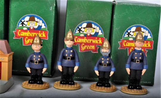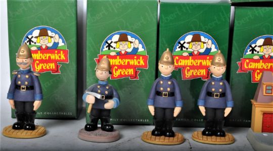 A collection of vintage 20th century boxed Robert Harrop Camberwick Green figures to include Dibble CG14, Barry McGrew CG12, Trumpton Fire station CGM02, Puch 2, Pugh 1, Captain Flack, Grubb and Cuthbert CG13. Together with a House of Wentworth Fire Fighter figurine.