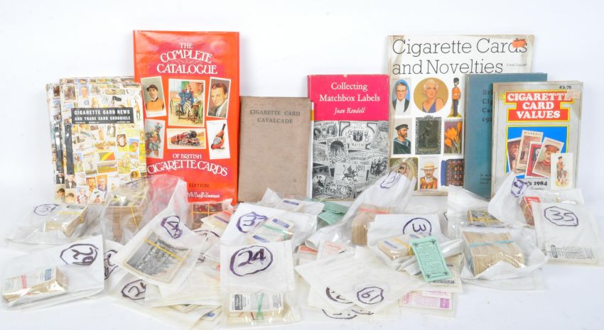 A collection of 20th century cigarette cards to include Hydes Birdseeds: Canary Culture, Mirro Card: Star Soccer Sides, Merlin Collection: Premier League, Proset: Large Football Cards, Wizard: Famous Footballeers, (pink & orange) County Cricketers, The Worlds Best Cricketers, Rane Products Lts: International Football Stars, MARS confections: Famous Aeroplanes, Pilots & Airports, MARS Confections: Ceremonies of the Coronation, Lyons Maid: Train Spotters, Hitchmans Fine Tea: The Story of Milk, The Home and Colonial Stores Ltd: Perfect Margarine, OXO Recipe, Typhoo Tea: Trees of The Countryside & Interesting Events in British History. Together with a large collection of Brooke & Bond Tea cards for series Police File, Flags and Emblems of the World, Prehistoric Animals, African Wildlife, Butterflied of the World, Wildlife in Danger, The Sea - Our Other World, The Sea - Trees in Britain, The sea - Wonders of Wildlife, Vanishing Wildlife, Freshwater Fish, The Race into Space, The Saga of Ships, The History of Aviation, The History of the Motor Car, Play Better Soccer, Inventors and Inventions, Adventurers and Explorers, Flags and Emblems of The World, Famous People, British Costumes. Alongside US War Bulletin Cards (World War II) Mirrorpic: Windston Churchill cards, Robert Vaughn all with facsimile signatures, David McCallum facsimile signed cards and Brussels Phot pictures. Together with an assortment of books on cigarette card collecting.