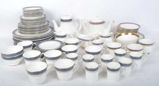 Two vintage 20th century Royal Doulton bone china part tea and dinner services in the Sherbourne and Sherbourne patterns. Comprising of dinner plates, teacups, coffee cups, saucers, side plates, salad bowls, teapots sugar bowl and milk jugs.
