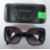 A pair of Bvlgari limited edition sunglasses & case. The sun glasses having oversized rounded square purple tinted lenses marked BVLGARI at top left lens to thick black frames, Large faceted pear shape stones to the arm with further round cut white & purple stones within a floral white metal setting. Frames measure approx 14cm.