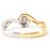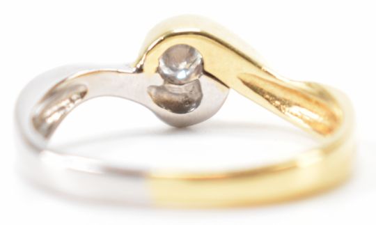 A two tone gold and diamond crossover ring. The ring being set with a round brilliant cut diamond in a crossover mount. Marked 18kt to the shank. Weight 3.4g. Size O.5.