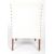 A retro mid 20th Century faux cream leather button backed easy lounge chair / cocktail / bedroom chair having a padded seat rest with all raised on stained beech splayed supports. Measures approx; 81cm x 52cm x 56cm.
