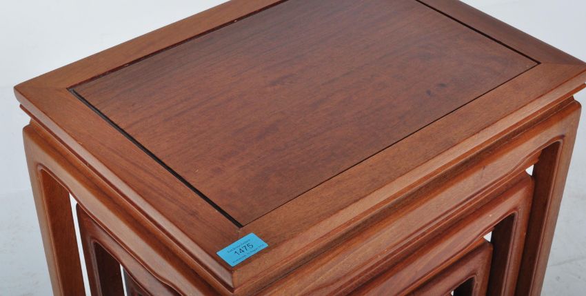 A 20th century Chinese Oriental hardwood quartetto nest of graduating tables having a stepped flared top over square upright supports united by peripheral stretchers It measures 68x49x36cm