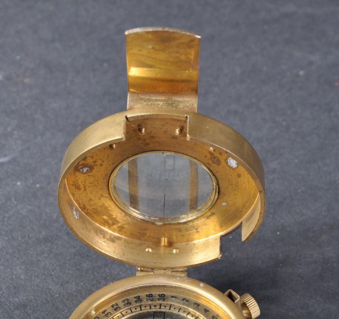 An original WWII Second World War British Army issued T. G. & Co Ltd made brass marching / field compass ' Mk III ', dated 1940. Brass construction, with glass viewing panel to top, with numerals to dial. Measures approx; 6cm diameter.