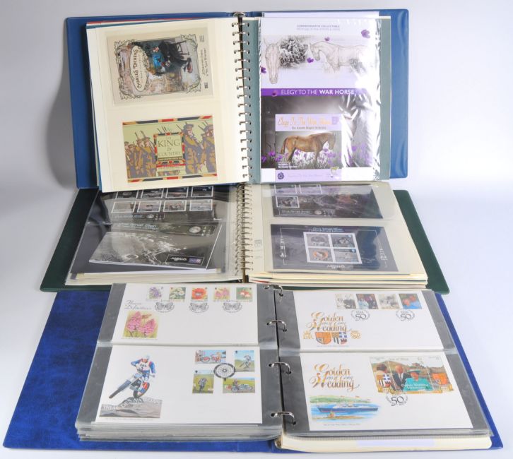 - third album (blue) - containing FDCs and covers, with a small amount of unused decimal stamp booklets to the rear (c£10).