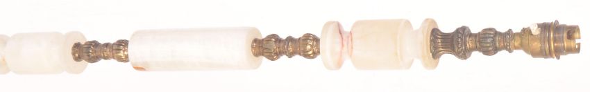 A retro vintage mid 20th Century circa 1950s Hollywood regency gilt brass and onyx floor standing standard lamp. Having a long brass column over a circular base. Measures approx. 128 x 30cm diameter.